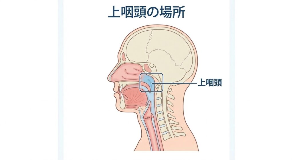 上咽頭というのは、鼻の奥、喉の上のあたり。
